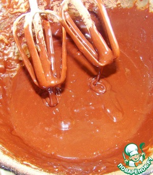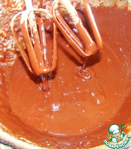 Получаем уже жидковатое тесто, которое выливаем поверх белого в чашу мультиварки.