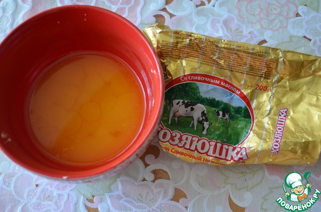 Маргарин предварительно необходимо растопить. Отправляем его на 1 мин. в микроволновку.