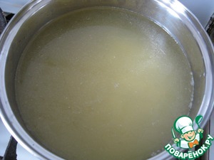 Берем предварительно приготовленный бульон (у меня говяжий), разогреваем