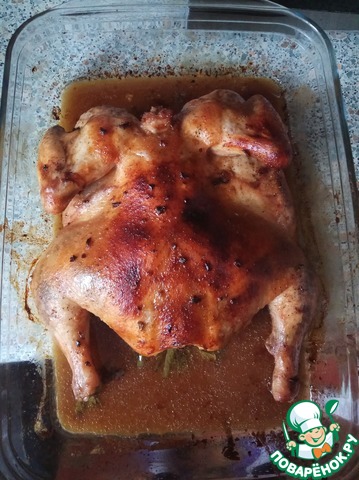 Даём готовой птице отдохнуть после духовки минут 10 и подаём к столу. Наивкуснейшая, наисочнейшая курочка готова!!! Приятного!!!