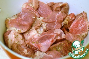 1. Мясо нарезать кусочками, переложить в кастрюлю, или чашку.