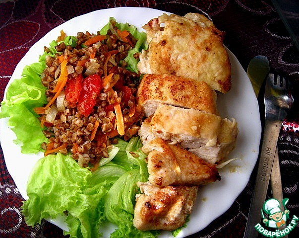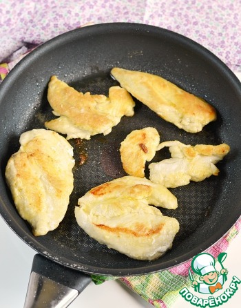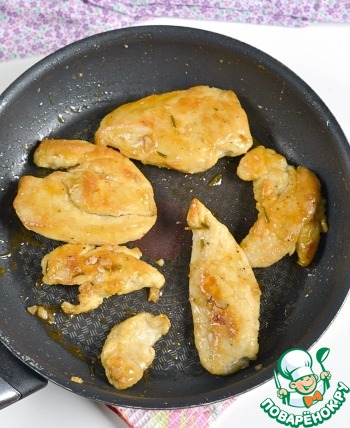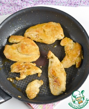В сковороде нагреть 2 ст. л. масла, обжарить в нем грудке на среднем огне с обеих сторон. На это у меня ушло около 8 минут.