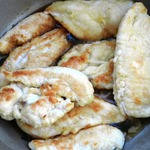 Затем добавить в сковороду готовые грудки и хорошо перемешать, чтобы они полностью, со всех сторон покрылись соусом.