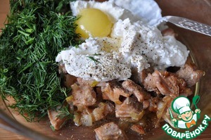 В остывшую рыбу кладём рикотту. Если у вас её нет, то можно сделать по одному из рецептов на сайте самим.