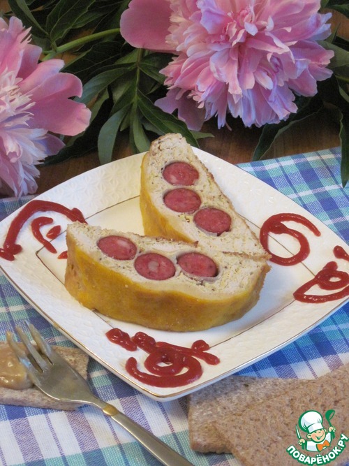 Рецепт «Рулет куриный с копчеными колбасками»:
