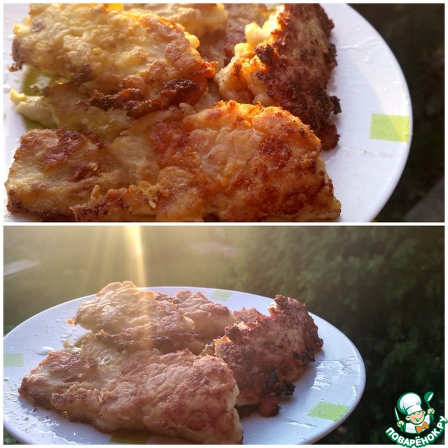 Треску почистить, выпотрошить, удалить кости и снять кожу. Вымыть холодной водой и нарезать на порционные куски. Треску сложить в чашку.