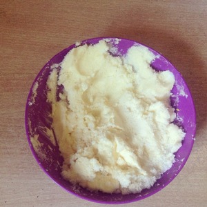 С помощью муки замешиваем тесто. Я добавляю муки постепенно, пока тесто не схватится, вам может понадобится чуть больше или чуть меньше. Заворачиваем в пакет или в пищевую пленку и оставляем в морозилку на часок- другой.