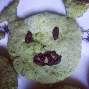 Выкладываем будущее печенье на противень и отправляет в духовку на 15-25 минут при 180гр. Когда печенье готово можно его украсить) я глазурью сделала гуманоиду глазки и ротик)