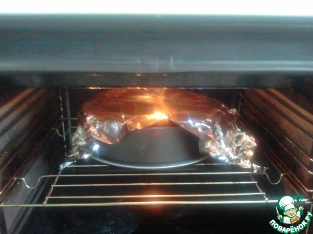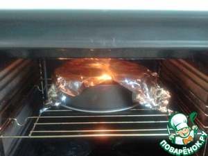• Накрываем форму фольгой и ставим в разогретую до 180 градусов духовку. По прошествии 20 минут фольгу снимаем и печем еще минут 20, в зависимости от вашей духовки. Проверяем готовность деревянной палочкой.