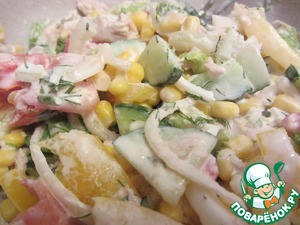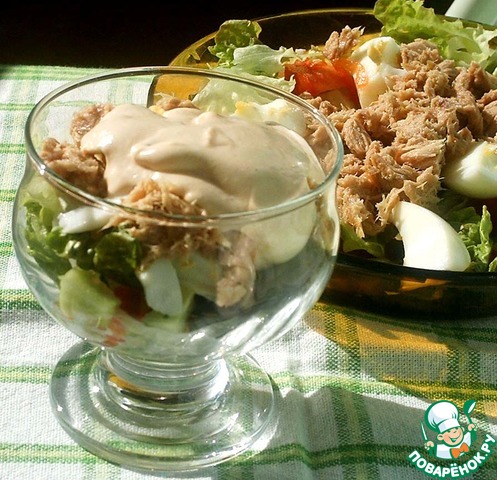 Летний салат с тунцом + заправка-соус с нотками базилика