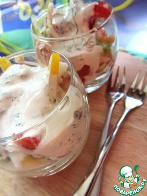 Рецепт «Летний салат с тунцом + заправка-соус с нотками базилика»:
