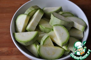 Цуккини моем, режем полукольцами толщиной около 1 см.