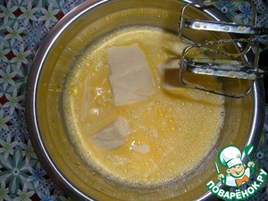 Добавить к цедре яйца, крахмал. Взбить миксером или блендером.