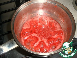 Глазурь. 5-7 крупных ягод клубники размять вилкой или блендером, добавить сахар.