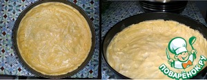 В съёмную форму выкладываем тесто (Я периодически смачиваю руки в воде и распределяю пальцами по дну, поднимая по бокам на 2-3 сантиметра). -