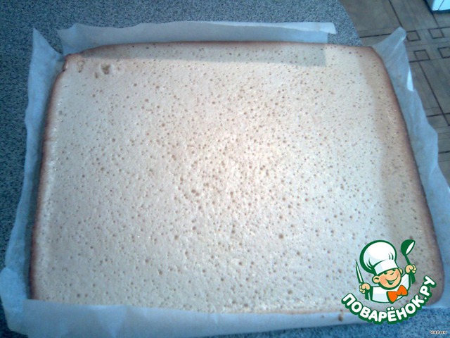 Готовый бисквит вместе с бумагой выложить на доску или стол