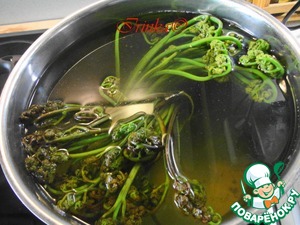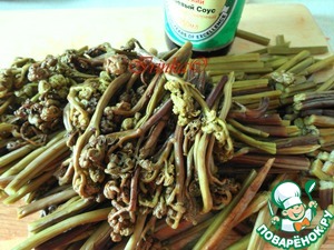 Тем, кто не имеет опыта общения с папоротником, лучше купить его в сушеном или соленом виде и отмочить. Я же свежесобранный дикорос вымачиваю сутки, часто меняя воду (вот так он выглядит после вымачивания)