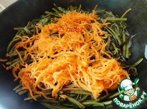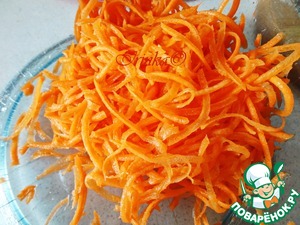 Морковку шинкуем на корейской терке или на любой другой тонкими полосками