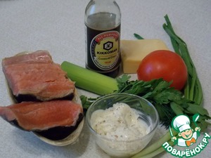 Сметану смешать со специями и соусом. Зелень, помидору и зеленый лук мелко порезать. Сыр натереть на мелкой терке. Все смешать.