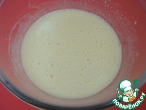 Продолжая взбивать, постепенно влить масло виноградной косточки, до тех пор, пока масса немного не загустеет (примерно две минуты).