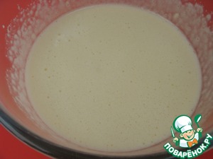 Получившуюся смесь добавить к мучной и перемешать лопаточкой 20-30 секунд.