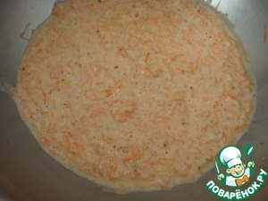 Вмешать венчиком тертую морковь.