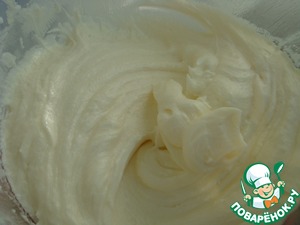 Добавить сахар и мякоть 1/2 стручка ванили (или 1/4 ч. л. ванилина) и слегка взбить.