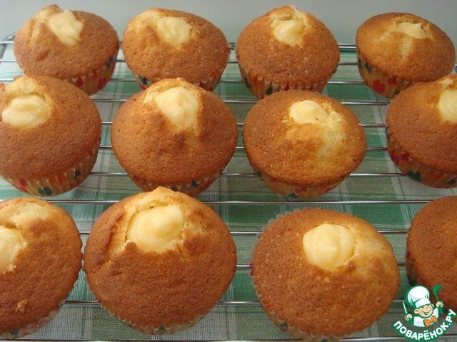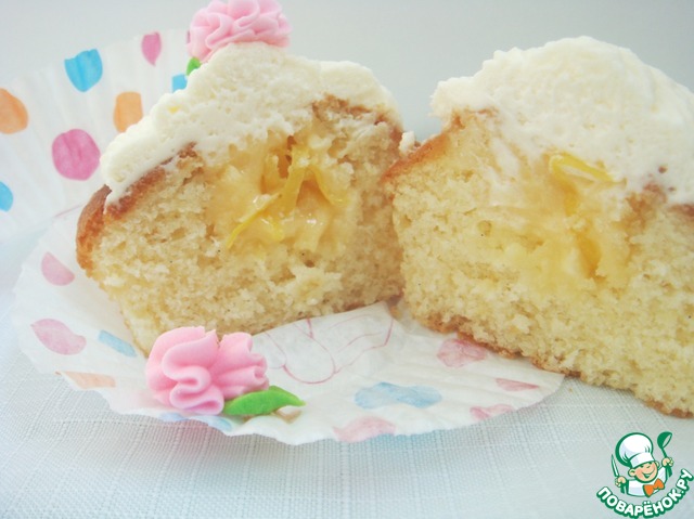 Ну, вот и я добралась до шестого уровня! Ура! В связи с этим публикую юбилейный сотый рецепт и угощаю всех вас просто божественными кексами: воздушными с нежнейшим лимонным кремом, покрытыми ароматизированными лимоном взбитыми сливками. Лимонный крем имеет способность быть острым и сладким одновременно. Абсолютно восхитительное сочетание взрывного вкуса лимона с маслянистой сладостью ванильного кекса и богатством ароматизированных взбитых сливок. Готовятся кексы очень быстро. А крем для них можно приготовить заранее и хранить в холодильнике.