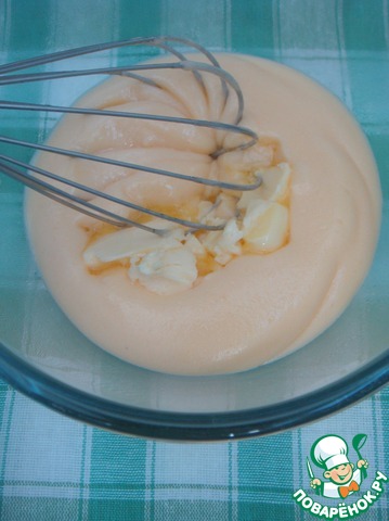 Переложить крем в миску и добавить 40 г сливочного масла.