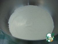 Взбить миксером 195 г муки, 200 г сахара, 1,5 ч. л. разрыхлителя и 1/4 ч. л. соли буквально 1 минуту до получения однородной смеси. |