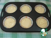Равномерно заполнить тестом бумажные формочки для кексов, установленные в жесткую форму. Удобно это делать ложкой для мороженого. Можно использовать силиконовые формы для кексов или металлические, тогда их необходимо смазать маслом. |