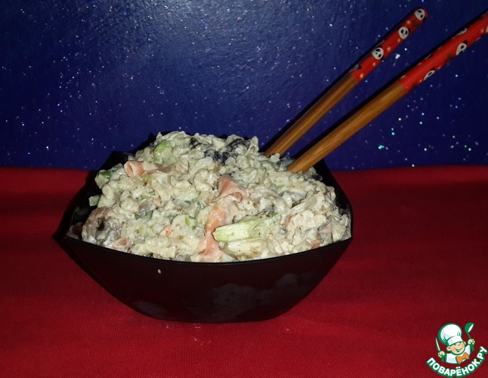 Палочки вставлены в салат исключительно для создания художественной картинки