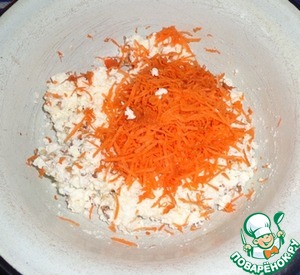 Добавить морковь натертую на мелкой терке. Перемешиваем.