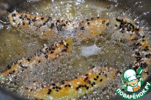 Яйцо немного взбить. Авокадо порезать на ломтики (каждый на 12-14 шт), обмакнуть в яйцо, обвалять в сухарной смеси и обжарить в горячем масле.