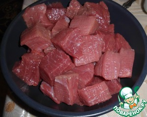 2. Мясо нарезаем средними кубиками, удаляя пленки.