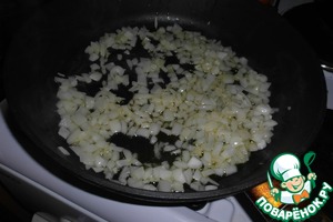 3. Измельчаем лук и поджариваем его на оливковом масле в большой сковороде с толстым дном до мягкости, примерно 5 минут.
