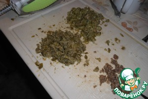 7. Мелко порубить корнишоны, каперсы, анчоусы. Все перемешать.