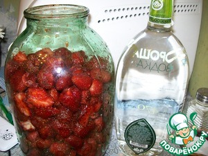 Очищаем ягоды от плодоножек и складываем в 3-хлитровую банку. Заливаем 1 литром водки.