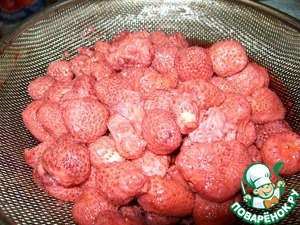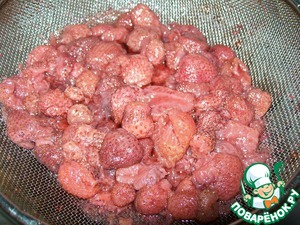 Клубнику откидываем на дуршлаг, даем стечь сиропу.