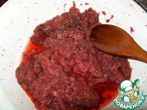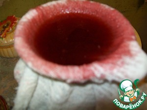 Это пюре отжимаем или, как я, протираем через марлю, чтоб опять-же вышел весь сок (фото, конечно, не очень эстетичное, но зато отображает процесс).