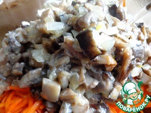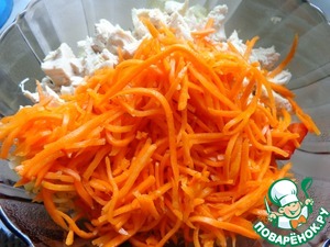 Добавляем корейскую морковь. Мы брали покупную средне острую.