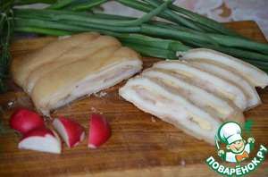 - Сыр плавленый (обычный твердый плавленый сырок) — 100 г