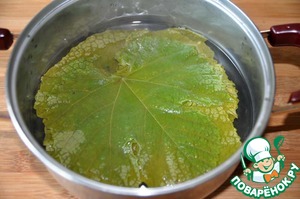 Свежие листья винограда моем, заливаем кипятком, оставляем на 2 минуты.