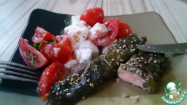 Рецепт «Лосось в виноградных листьях на гриле»: