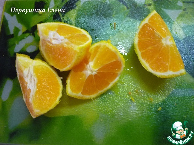 Разрежем апельсин на четыре части и выжмем сок. Я просто выдавила вручную.