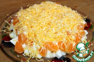Для любителей необычных сочетаний (предупреждаю сразу, для любителей ))) Очень нежный, очень "женственный" салат.
