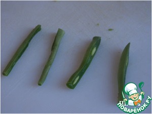 Самая кропотливая работа в приготовлении салата из стручковой фасоли – нарезать стручковую фасоль. Я сначала отрезаю "попки", потом ее режу на половинки, а потом каждую половинку вдоль. Если фасоль очень длинная, то режу ее на 3 части. -