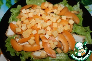 Изначально в салате был голубой сыр, но я его недолюбливаю, предпочитаю обычный (вы вольны выбирать по вкусу).