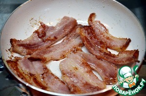 А пока их приготовим. Бекон обжарим на сковороде до хрустящего состояния.