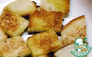 В вытопившемся жире обжарим нарезанный белый хлеб.